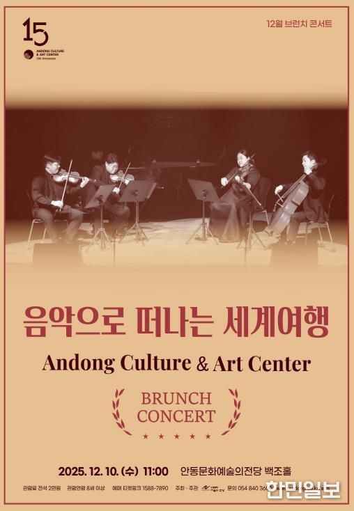 한민일보 서울포커스 김봉순 기자 | 안동문화예술의전당은 매월 둘째 주 수요일, 바쁜 일상 속 잠시 여유를 찾고자 하는 클래식 애호가들을 위한 브런치 콘서트를 정기적으로 운영하고 있다. 12월 10일 오전 11시에는 백조홀에서 한 해의 끝자락을 따뜻하게 채워줄 브런치 콘서트 ‘음악으로 떠나는 세계여행’을 선보인다.