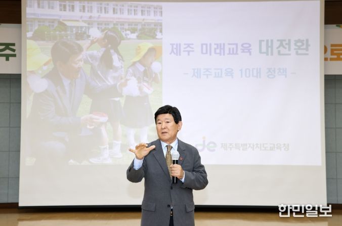 김광수 교육감은 특강에서 제주교육청만의 차별화된 대표 정책으로 ▲자치경찰 활용 학교안전경찰관 제도 ▲제주형 자율학교(글로벌역량학교) ▲자율학교 운영 유형 다양화 ▲교육발전특구 시범지역 운영 ▲늘봄학교 및 초등주말돌봄센터 '꿈낭' 운영 등을 소개했다.