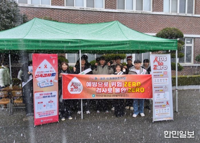 한민일보 서울포커스 박용남 기자 | 전남 무안군은 제38회 세계 에이즈의 날(12월 1일)을 맞아 관내 대학생들의 건강증진과 에이즈에 대한 올바른 인식 확산을 위해 지난 12월 2일부터 이틀간 관내 대학교에서 집중 예방 캠페인을 진행했다.