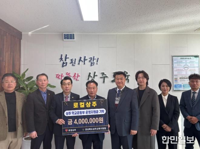 한민일보 서울포커스 김봉순 기자 | 지역자생봉사단체인‘로컬상주’가 2025년 12월 4일 경상북도상주교육지원청에 학교운동부 운영지원금 400만원을 기탁했다.