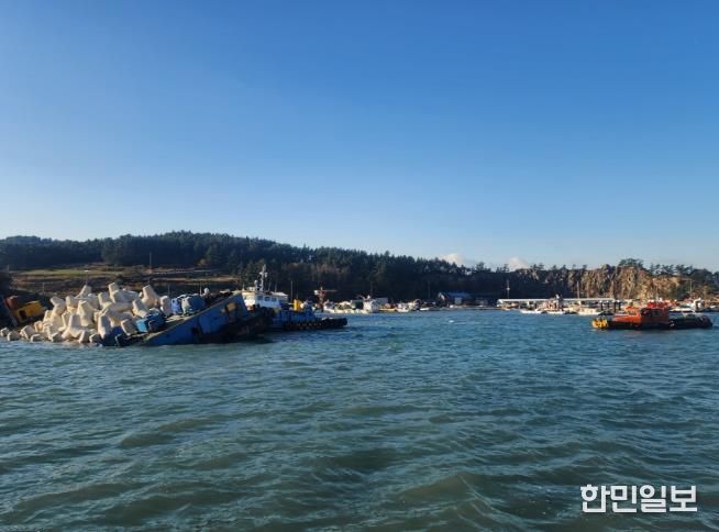 한민일보 서울포커스 박용남 기자 | 완도해양경찰서는 오늘 오전 8시 11분경 전남 완도군 청산도 도청항내에서 바지선 A호(414톤, 승선원 2명, 테트라포트 800톤 적재)가 좌현으로 약 40도 기울어 침수되는 사고가 발생했다고 밝혔다.