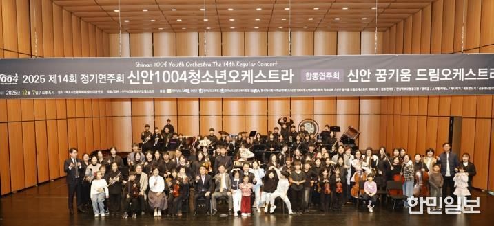 한민일보 서울포커스 임광현 기자 | 신안군 섬 지역 청소년들의 예술적 성장을 이끌어 온 ‘신안1004청소년오케스트라’와 ‘신안 꿈키움 드림오케스트라’가 지난 7일 목포시민문화체육센터 대공연장에서 제14회 정기연주회 ‘천사들의 열네 번째 이야기’를 성공적으로 마무리했다.