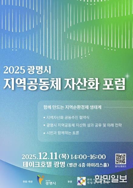 시는 오는 11일 오후 2시 테이크호텔 광명 별관 4층 아이리스홀에서 ‘2025년 광명시 지역공동체 자산화 포럼’을 개최한다.