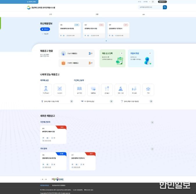경북교육청 관계자는 “경북교육 인력 채용시스템은 학교지원센터의 복잡한 채용 절차를 하나의 플랫폼으로 통합해 행정업무를 경감하기 위한 것”이라며, “1개월간 시범운영을 거쳐 2026년 2월 중 본격 운영을 시작할 계획”이라고 말했다.
