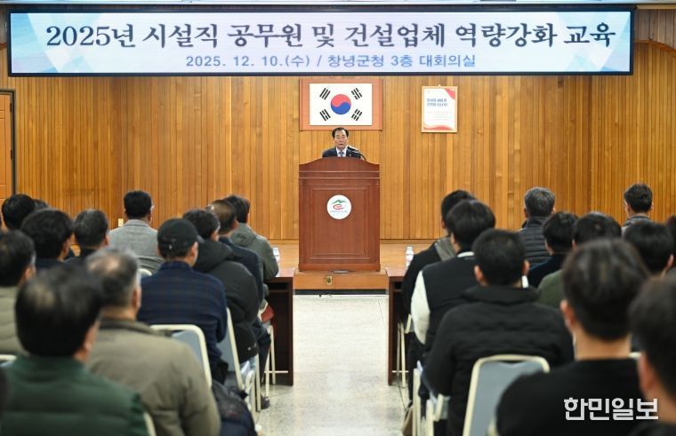 한민일보 서울포커스 김은금 기자 | 창녕군은 지난 10일 창녕군청 대회의실에서 ‘2025년 시설직 공무원 및 건설업체 관계자 역량강화 교육’을 실시했다.