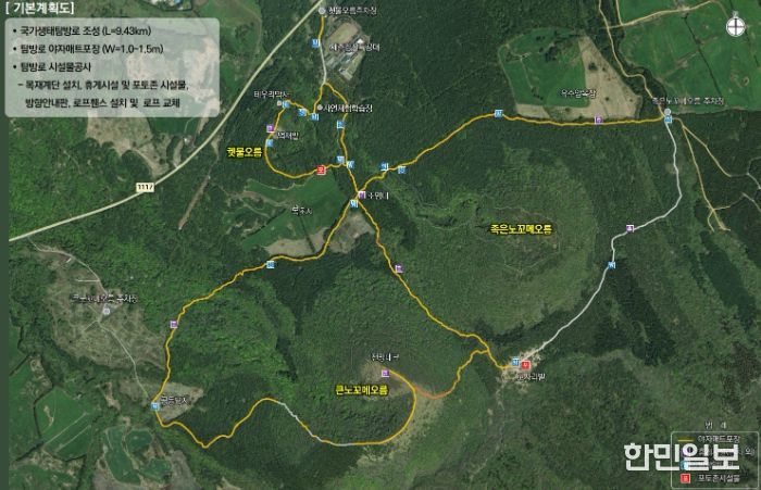 이번 사업은 궷물오름-족은노꼬메오름-큰노꼬메오름을 잇는 9.43km 구간을 국가생태탐방로로 정비해 2026년까지 마무리할 계획이다.