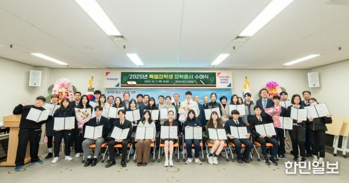 한민일보 서울포커스 임광현 기자 | (재)부산진구장학회에서는 12월 11일 부산진구청 회의실에서 ‘2025년도 특별장학생’에 대한 장학증서 수여식을 가졌다고 밝혔다.