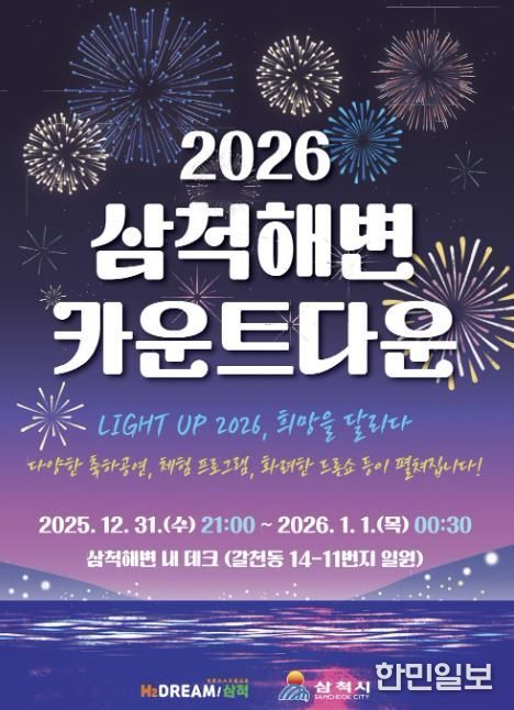 한민일보 서울포커스 임경복 기자 | 삼척시는 2025년의 마지막 밤과 2026년 새해 첫 아침을 삼척에서 맞이하려는 시민과 관광객이 함께 즐길 수 있는 다채로운 행사를 마련한다고 밝혔다.