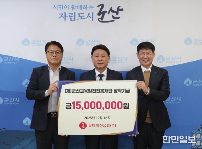 한민일보 서울포커스 김용택 기자 | 롯데칠성음료(주)(대표 박윤기)는 16일 군산시청을 찾아 지역의 교육 발전을 위해 써달라며 장학금 1,500만 원을 군산교육발전진흥재단에 기탁했다.
