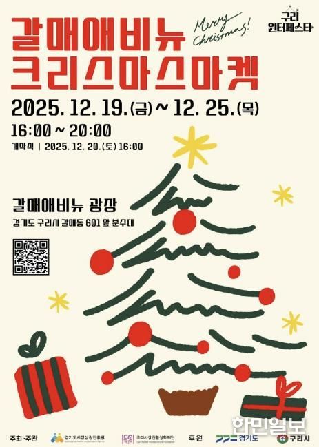 한민일보 서울포커스 김정옥 기자 | 구리시상권활성화재단은 오는 12월 19일부터 25일까지 갈매 애비뉴 광장에서 ‘2025 구리윈터페스타–갈매애비뉴 크리스마스 마켓’을 개최한다고 밝혔다.