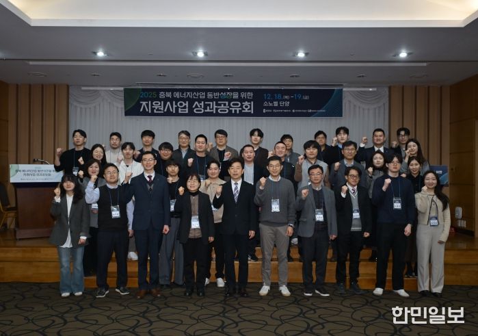 전광호 도 에너지과장은 “그동안 충북과 긴밀히 협력해 온 에너지 유관기관과 산·학 전문가들께 감사드린다”며 “이번 성과공유회는 지역 기업의 성장잠재력을 키우고 혁신성과를 확산하는 뜻깊은 자리”라고 밝혔다.