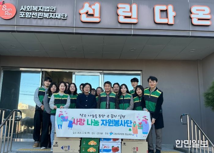 한민일보 서울포커스 임경복 기자 | 포항교육지원청 중등교육과 소속 직원은 2025. 12. 18.(목) 포항시 흥해읍 칠포로에 위치한 아동일시보호시설 선린다온에서 사랑 나눔 봉사활동을 실시했다.