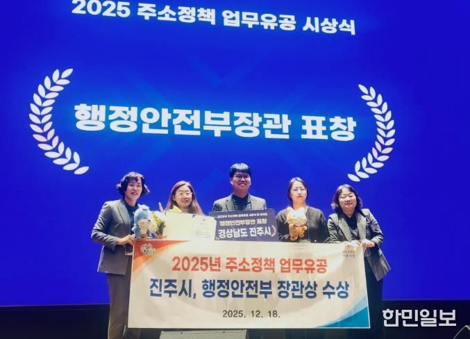 한민일보 서울포커스 김은금 기자 | 진주시는 행정안전부가 주관한 ‘2025년 주소정책 업무유공’의 우수기관으로 선정돼 행정안전부 장관 표창을 수상했다고 밝혔다.