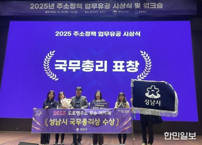 한민일보 서울포커스 임경복 기자 | 성남시는 행정안전부가 주관한 2025년 주소정책 업무 평가에서 도로명주소 활성화 분야 우수 지자체로 선정돼 국무총리 기관표창을 수상했다고 19일 밝혔다.