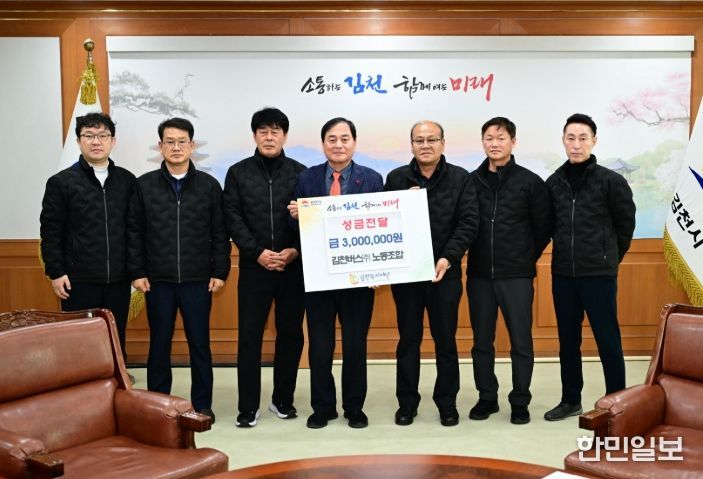한민일보 서울포커스 임경복 기자 | 김천버스노동조합(조합장 남한수)은 12월 18일 김천시청을 방문해 지역 사랑 실천을 위한 불우이웃돕기 성금 300만 원을 전달하며 따뜻한 마음을 보탰다.