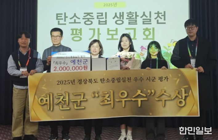 한민일보 서울포커스 임경복 기자 | 예천군은 19일 구미 호텔금오산에서 열린 ‘2025년 탄소중립실천 우수시군 평가보고회’에서 ‘최우수상’을 수상했다.