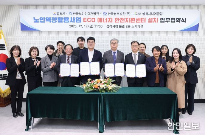 한민일보 서울포커스 임경복 기자 | 삼척시는 12월 19일 한국노인인력개발원, 한국남부발전(주) 삼척빛드림본부, 삼척시니어클럽과 함께 신규 어르신 일자리 창출사업으로 ‘Eco에너지 안전지원센터’ 운영을 위한 업무협약을 체결했다.