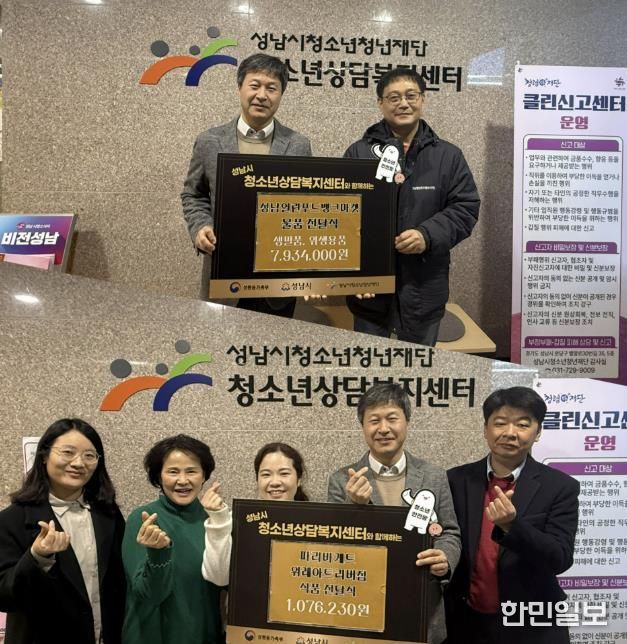 한민일보 서울포커스 임경복 기자 | 성남시청소년청년재단 성남시청소년상담복지센터는 12월 18일, 성남열린푸드뱅크마켓, 파리바게트 위례아트리버점과 물품 전달식을 진행했다고 밝혔다.