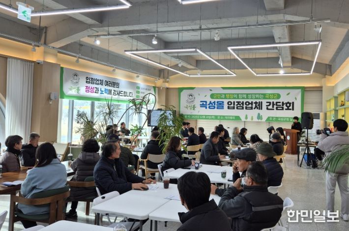 한민일보 서울포커스 박용남 기자 | 전남 곡성군은 지난 18일 관내 소재한 디톡스테라피거점센터 테라밸리에서 2025년 곡성몰 입점업체 간담회를 개최하고 한 해 동안 곡성몰의 성장에 함께해 온 입점업체들의 노고에 감사를 전하며 의미 있는 한 해의 마무리를 함께했다고 19일 밝혔다.