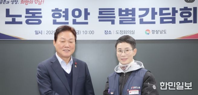 한민일보 서울포커스 임철현 기자 | 경상남도는 민주노총 경남지역본부와 기업 노동조합 지회장들과 만나 지역 노동 현안에 대한 의견을 나누고, 노동 존중 및 상생 노사문화 조성을 위한 협력을 다짐했다.