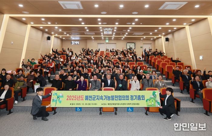 한민일보 서울포커스 임경복 기자 | 예천군 지속가능발전협의회는 20일, 복합커뮤티니티센터 다목적강당에서 2025년도 정기총회를 열었다. 이번 총회는 올해 주요성과를 점검하고 2026년도의 사업계획을 체계적으로 수립하기 위한 자리였다.
