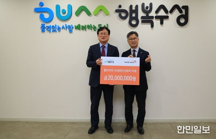 한민일보 서울포커스 임경복 기자 | 사회복지법인 월드비전 대구경북사업본부는 지난 18일 취약계층 아동 가정의 난방비 지원을 위해 후원금 2,000만 원을 수성구청에 전달했다.