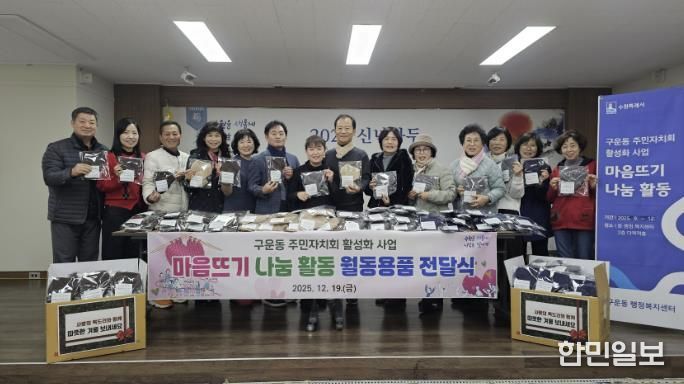 한민일보 서울포커스 진광성 기자 | 지난 19일, 권선구 구운동 주민자치회가 주민자치회 활성화 사업 일환으로 추진한 ‘마음 뜨기 나눔 활동’을 통해 만든 목도리 400여 개를 구운동 행정복지센터에 전달했다.