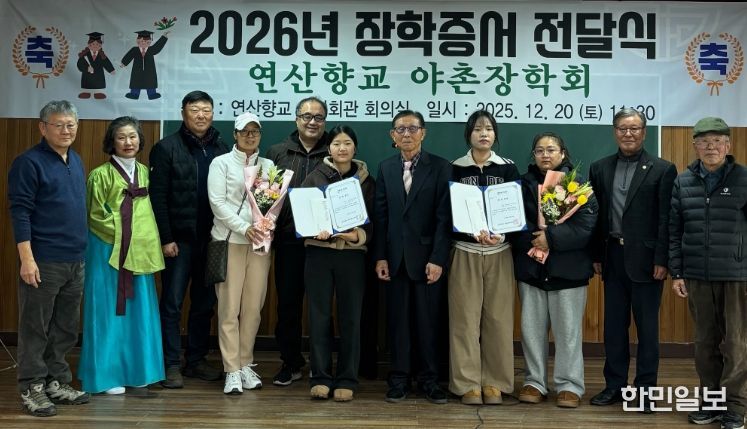 연산향교 관계자는 “야촌장학회는 지역 사회의 교육 발전과 인재 양성에 꾸준히 기여해 왔다”며 “앞으로도 지속적인 장학사업을 통해 지역의 미래 인재들이 꿈을 키워갈 수 있도록 적극 지원하겠다”고 전했다.