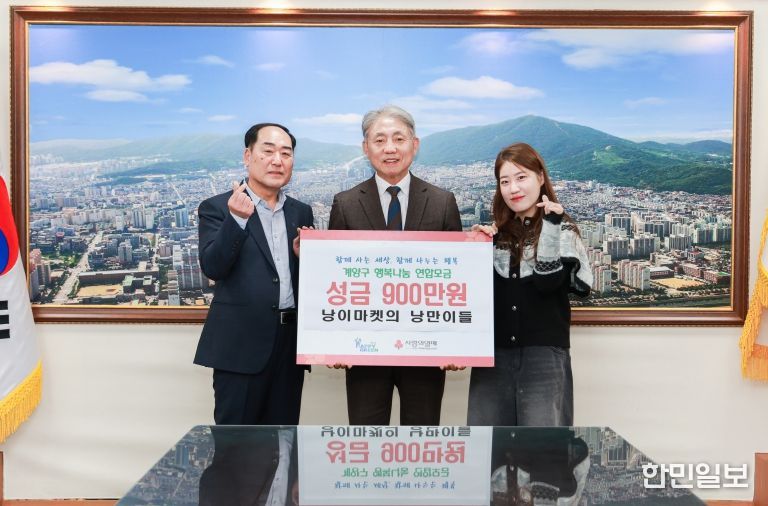 한민일보 서울포커스 김성혜 기자 | 인천광역시 계양구는 낭이마켓(대표 정수미)이 지역 내 취약계층 지원을 위해 성금 900만 원을 기탁했다고 밝혔다.