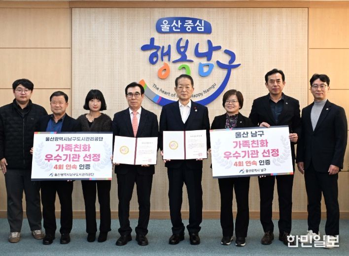 한민일보 서울포커스 기자 | 울산 남구는 성평등가족부가 주관하는 ‘2025년 가족친화 인증’ 재인증 기관으로 선정돼 4회 연속 가족친화 인증을 획득했다고 19일 밝혔다.