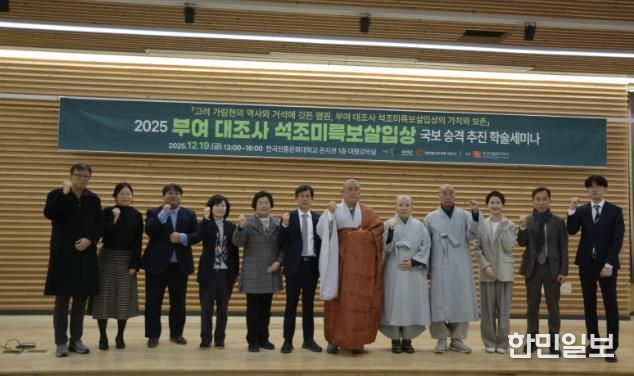 한민일보 서울포커스 유돈상 기자 | 부여군은 부여군과 대한불교조계종 대조사가 주최하고 한국전통문화대학교가 주관한 '부여 대조사 석조미륵보살입상 국보 승격 학술 세미나'를 한국전통문화대학교 온지관에서 성황리에 개최했다고 23일 밝혔다.