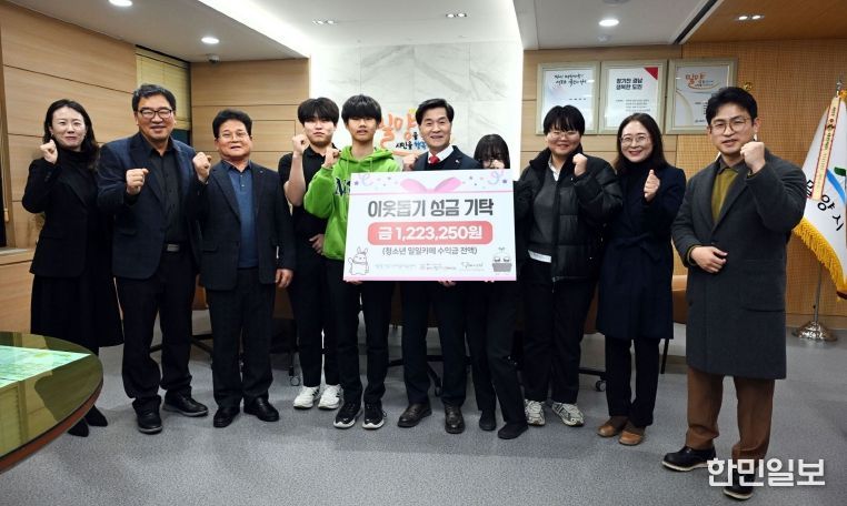 한민일보 서울포커스 김은금 기자 | 밀양시는 지난 22일 청소년문화의집 소속 청소년들이 시장실을 방문해 직접 운영한 일일카페 수익금 122만 3,250원을 연말 이웃돕기 성금으로 기부했다고 밝혔다.