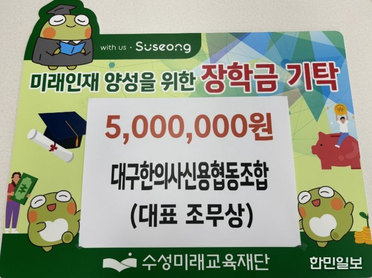 한민일보 서울포커스 임경복 기자 | 대구한의사신용협동조합(대표 조무상)은 지난 19일 지역 인재 육성과 교육 발전을 위해 장학금 500만 원을 수성미래교육재단에 기탁했다.
