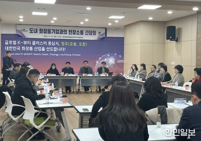 한민일보 서울포커스 임경복 기자 | 충북도는 23일 충북화장품임상연구지원센터에서 도내 화장품산업 경쟁력 강화를 위해 도내 화장품기업 관계자들과 현장소통 간담회를 개최하고 ‘2026 오송화장품․뷰티산업엑스포’의 내실 있는 개최와 기업 현장의 건의 및 애로사항을 폭넓게 청취했다.