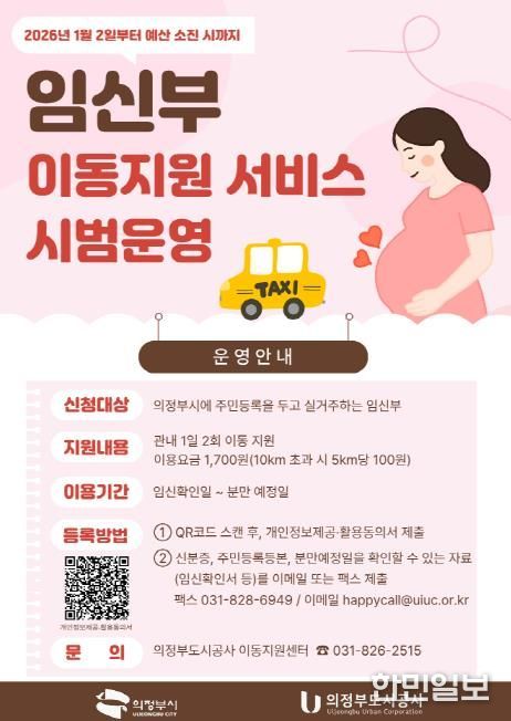한민일보 서울포커스 심기옥 기자 | 의정부시가 임신부의 이동 불편을 해소하고 안전한 외출을 지원하기 위해 2026년 1월 2일부터 ‘임신부 이동지원 서비스’를 시범운영한다.