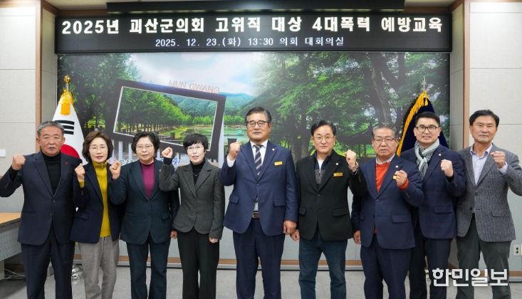 한민일보 서울포커스 김다남 기자 | 괴산군의회는 23일 의원들과 5급이상 관리자를 대상으로 4대폭력 예방 통합교육을 실시했다.
