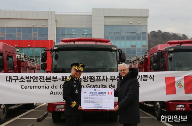 엄준욱 대구소방안전본부장은 “이번에 지원하는 소방자동차가 페루 현지 재난에 실질적으로 활용돼 국민의 안전에 기여하길 바란다”며, “앞으로도 양국 간 우호 협력 증진과 소방안전 환경 개선을 위해 지속적으로 노력하겠다”고 말했다.
