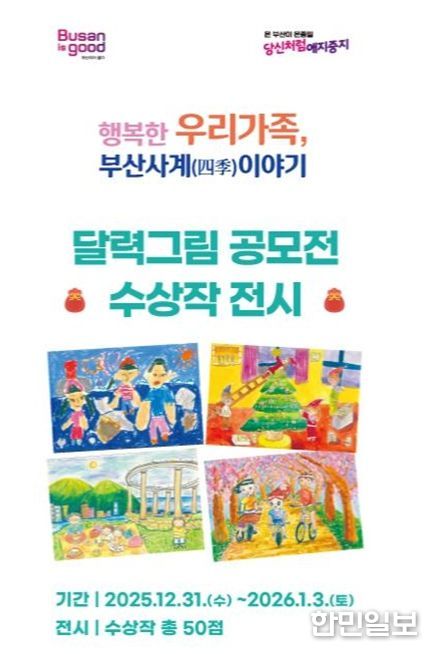 한민일보 서울포커스 임광현 기자 | 부산시는 오늘(31일)부터 내년 1월 3일까지 도시철도 1호선 시청역 연결 통로에서 '행복한 우리 가족, 부산 사계(四季) 이야기' 달력그림 공모전 우수작품을 전시한다고 밝혔다.