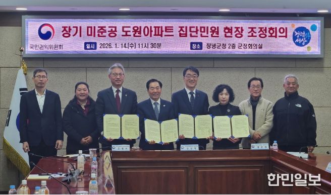 한민일보 서울포커스 박근원 기자 | 경상남도는 14일 오전 11시 창녕군청에서 열린 국민권익위원회 공동주택 집단민원 현장조정회의에서 장기 미준공 공동주택 문제해결을 위한 조정 절차에 참여했다고 밝혔다.