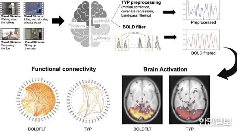 휴지기 fMRI에서 신뢰도 높은 BOLD(blood oxygenation level-dependent) 신호만 추출하던 BOLD-filter 기법을 과제기반 fMRI 전처리에 적용, 유의미한 BOLD 신호를 강조하고 잡음을 줄였다.