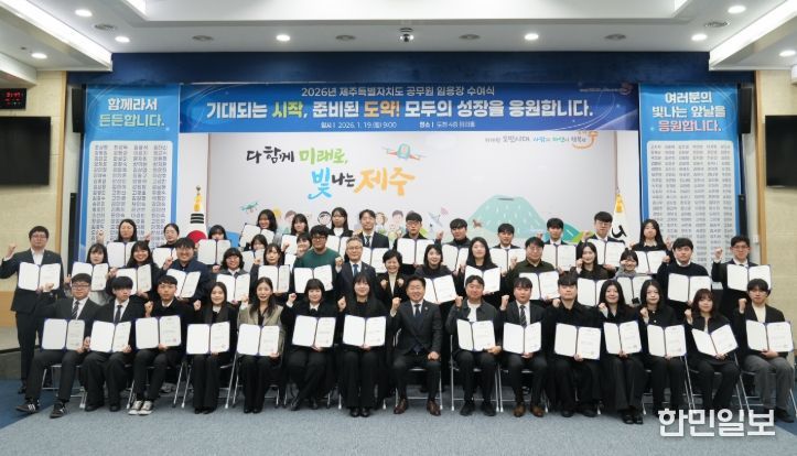 한민일보 서울포커스 임경복 기자 | 제주특별자치도는 19일 오전 도청 탐라홀에서 ‘2026년 상반기 정기인사 임용장 수여식’을 개최하고 민선 8기 성과 완성을 위한 조직 정비를 마무리했다.