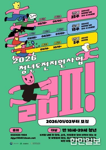 박윤희 대구광역시 청년여성교육국장은 “청년도전지원사업은 취업 과정에서 잠시 멈춰 선 청년들이 다시 자신감을 찾고 재도전에 나설 수 있도록 돕는 맞춤형 지원 정책”이라며 “지역 청년들의 많은 관심과 참여를 부탁드린다”고 말했다.