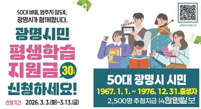 한민일보 서울포커스 임광현 기자 | 광명시가 50대 중장년 시민의 배움 기본권 보장을 위해 올해도 평생학습지원금 지원을 이어간다.