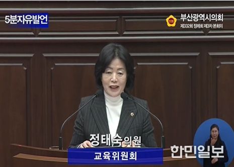 한민일보 서울포커스 임광현 기자 | 부산광역시의회 교육위원회 정태숙 의원(국민의힘, 남구2)은 1월 26일 열린 제333회 임시회 제1차 본회의 5분 자유발언을 통해, 황령산 생태숲에 조성된 ‘김소월 시와 함께 하는 길’에 이어서 머무를 수 있는 ‘K-문학 향유 공간 조성’이 필요하다고 강조했다.