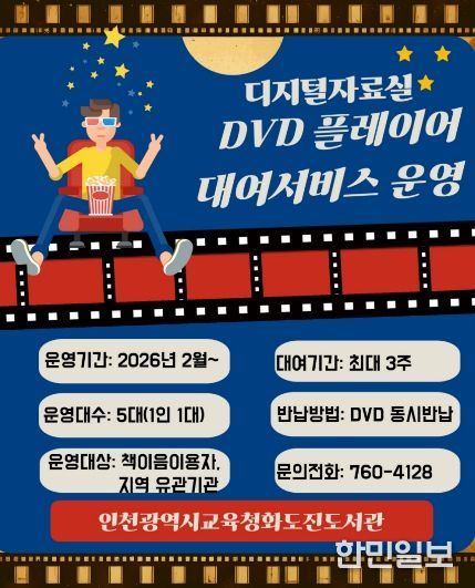 한민일보 서울포커스 유창렬 기자 | 인천광역시교육청화도진도서관(관장 한상철)은 시민의 미디어 접근성을 강화하고 폭넓은 문화 향유 기회를 제공하기 위해 2월부터 ‘DVD 플레이어 대여 서비스’를 운영한다.