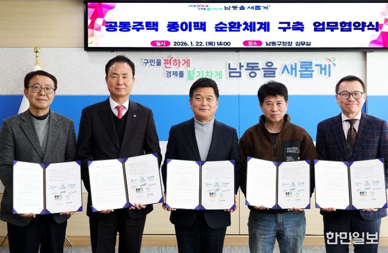 한민일보 서울포커스 김성혜 기자 | 인천시 남동구는 최근 자원순환 관련 기관‧기업과 ‘공동주택 종이팩 순환 체계 구축’을 위한 업무협약을 체결했다고 27일 밝혔다.
