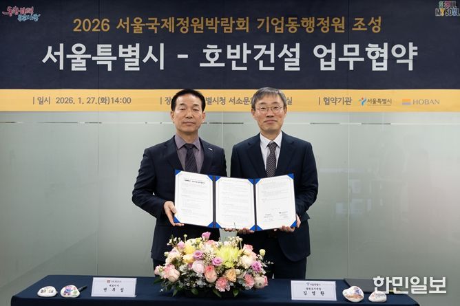 한민일보 서울포커스 국용호 기자 | 서울시는 2026년 5월 1일 서울숲에서 개막하는 서울국제정원박람회를 앞두고, 호반건설과 ‘기업동행정원’ 조성을 위한 업무협약(MOU)을 1월 27일 체결했다.