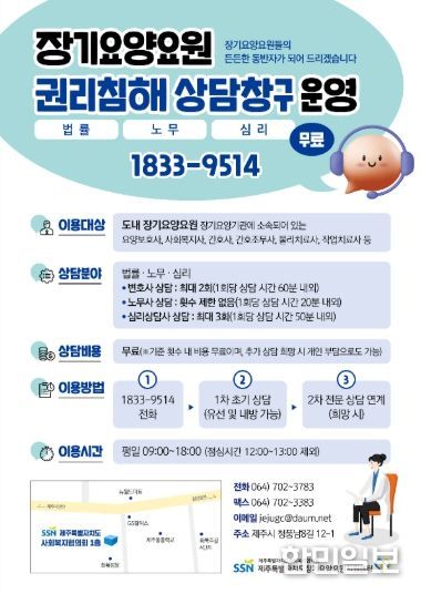 한민일보 서울포커스 임경복 기자 | 제주특별자치도가 도 단위 최초로 요양보호사 등 장기요양기관 종사자를 위한 전용 상담전화 ‘시시콜콜’을 개설해 1월부터 운영하고 있다.