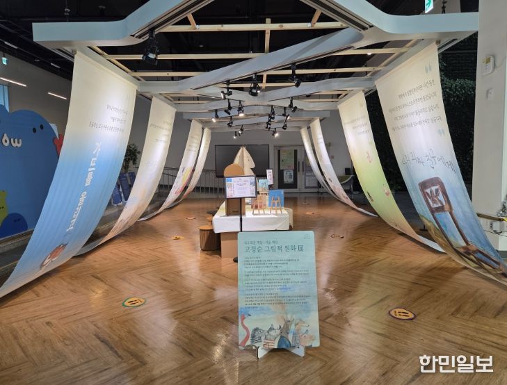 전시 공간에는 고정순 작가의 다양한 그림책 도서도 함께 전시돼 관람객이 자유롭게 책을 읽고 머물 수 있는 '겨울 책장' 형태로 조성됐다.