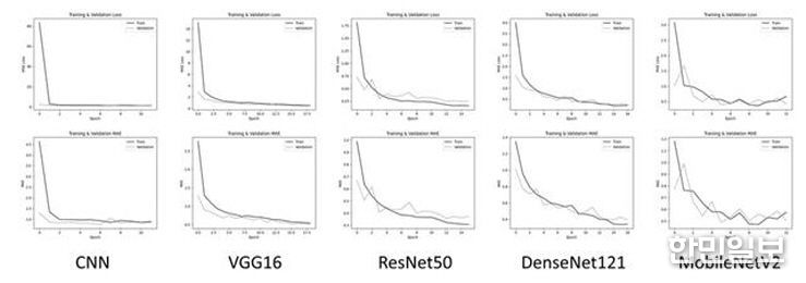 이를 위해 이미지 학습에 널리 활용되는 합성곱신경망(CNN) 기본 모델과 함께, VGG16, ResNet50, DenseNet121, MobileNetV2 등 CNN 기반 전이학습 모델을 적용해 예측 성능을 비교·분석했다.